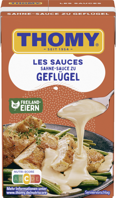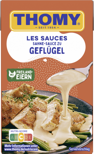 Für echten Genuss brauchts Qualität. Darum stecken in der Thomy Les Sauces Geflügel Sahne Sauce nur EIER AUS FREILANDHALTUNG, frische Sahne und andere ausgewählte Zutaten und keine Konservierungsstoffe.