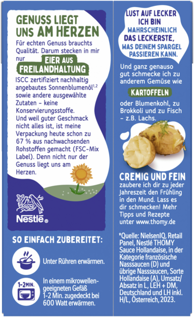Für echten Genuss brauchts Qualität. Darum stecken in der THOMY Les Sauces Hollandaise nur Eier aus Freilandhaltung und ausgewählte Zutaten und keine Konservierungsstoffe.