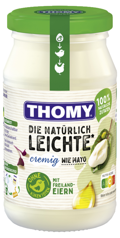 Rucola putzen, waschen und in mundgerechte Stücke zerpflücken. Alle Zutaten in eine Schüssel geben, mit  THOMY Die Natürlich Leichte und Milch mischen.