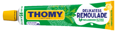 Die Thomy Delikatess-Remoulade ist mit natürlichen Zutaten*, Freilandeiern und feinen Kräutern gemacht. Dass die Tube recycelbar ist, ist eh klar. Schmeckt und fühlt sich gut an.