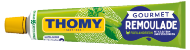 Wir sind besonders stolz auf unsere unwiderstehliche THOMY Gourmet Remoulade. Sie ist eine vielseitige Kräuterremoulade mit fein gehackten Gewürzen und Zutaten – die ideale Begleitung für beliebte Snacks und Mahlzeiten. Sie ist ideal als Kräuter-Dip für Dampf- oder Grillgemüse oder als Kräutermayonnaise. Sie ist ein perfekter Begleiter für Kartoffelgerichte wie Pellkartoffeln, geröstete und gebackene Kartoffeln oder Kartoffelecken. Dank praktischer Aluminiumtube mit Garnierstern ist diese THOMY-Sauce einfach zu verwenden und ideal zum Garnieren. Lassen Sie sich inspirieren von unseren weiteren cremigen Mayonnaise-Varianten. Sie finden alles, was Sie für eine kreativere Küche suchen.