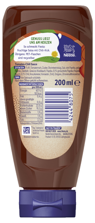 THOMY Salsa Sauce kombiniert fruchtige Tomate mit feiner Schärfe und bringt frischen Tex-Mex-Charakter auf den Teller. Perfekt zu Bowls, Tacos oder als Dip zu Snacks.
